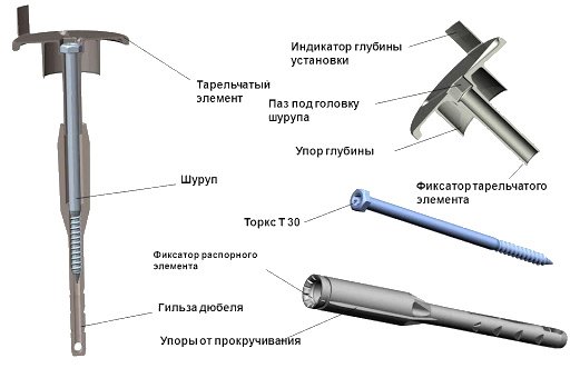 Подбирая тарельчатые дюбели, стоит учитывать специфику уплотнителя и распорного элемента. Каждый параметр имеет собственные особенности, заслуживает отдельного рассмотрения.